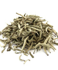 Silver Needle stands as a prized gem in the realm of white tea, renowned as one of the finest tea grades available. The visual allure of Silver Needle is striking, characterized by straight needle-like buds boasting a silvery tone. The robust bud head, generously sized, exhibits white tips adorned with a delicate covering of fine, silken strands.