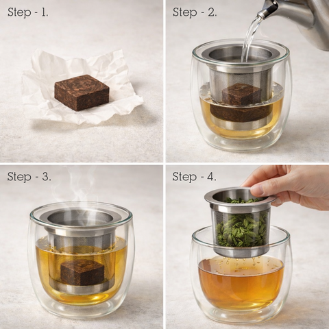 Puerh is traditionally pressed into shapes such as cakes, bricks, coins, or nuggets. Compression makes tea easier to store, transport, and age evenly. These formats are part of puerh’s cultural history and contribute to its long-term preservation and ritual use.