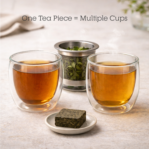 Most pieces yield 2-3 infusions / cups, depending on the tea and your brewing style.