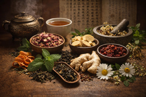 Many of the Signature Tea Blends are inspired by time-honored combinations that have been prepared for centuries within traditional tea and herbal systems. Across cultures, specific leaves, roots, flowers, and botanicals were intentionally paired - not at random, but according to established knowledge passed down through generations.