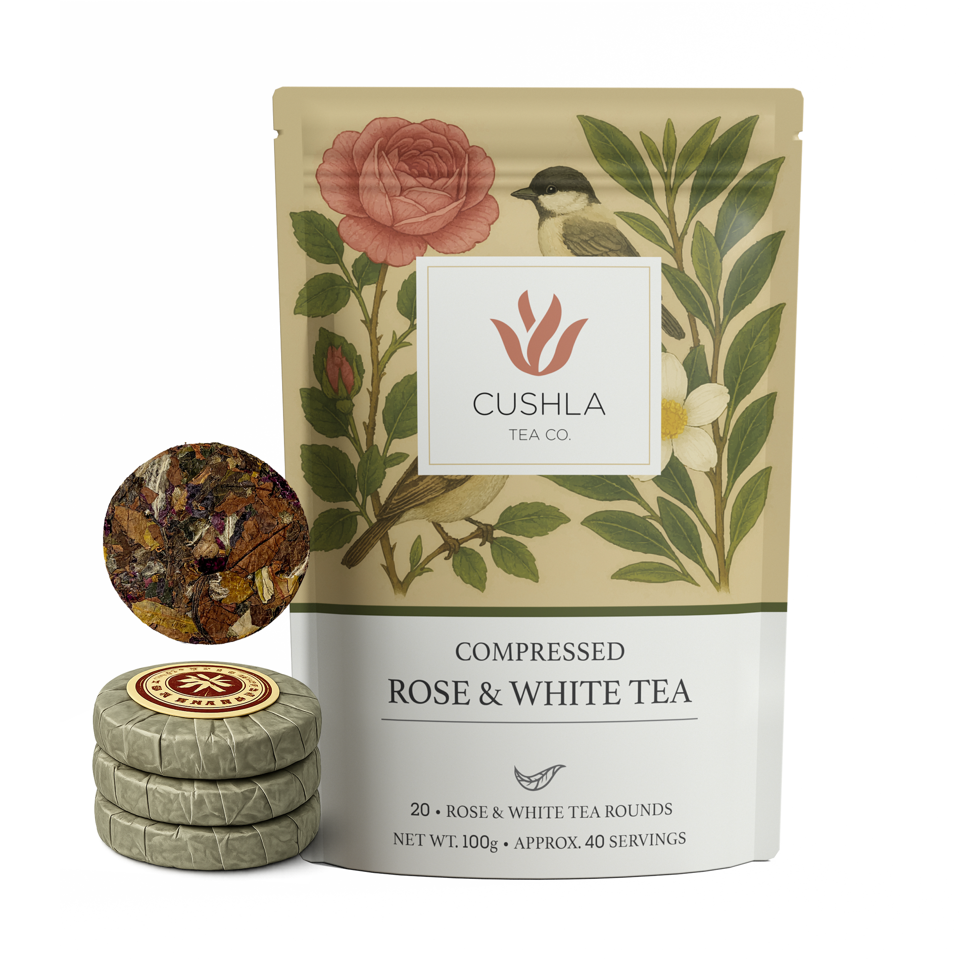 - WHITE TEA WITH ROSE PETALS - A refined blend of gently processed white tea and fragrant rose petals for a soft, elegant, and aromatic infusion.