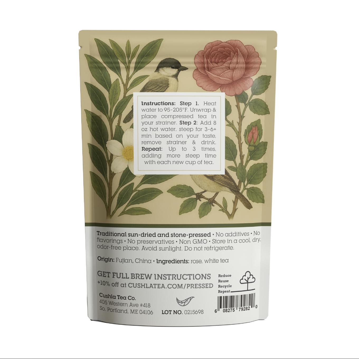 INDIVIDUALLY WRAPPED ROSE & WHITE TEA COINS - Each mini tea coin is individually wrapped to preserve freshness, aroma, and delicate floral character while offering convenient single-serve portions.